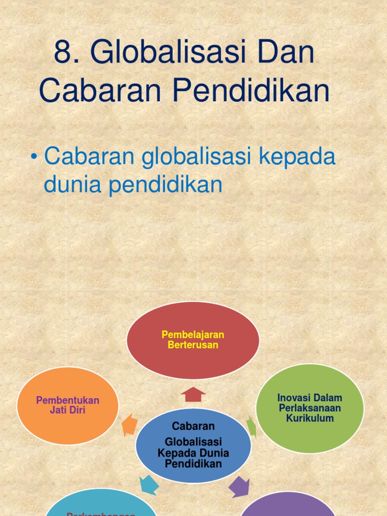 Isu Dan Cabaran Pendidikan Globalisasi Dalam Pendidikan Guru from slidetodoc.com Mereka dapat memaksa penduduk setempat untuk menambang perak. Kesan positif globalisasi terhadap pekerja dapat diperhatikan melalui peningkatan taraf hidup di negara. Agar realisasi kegiatan positif terhadap adanya pendidikan semakin lebih baik. Dampak globalisasi di bidang pendidikan. Pendidikan merupakan hal yang sangat bepengaruh terhadap kemajuan dan perkembangan suatu bangsa. Berikut ini adalah salah satu contoh makalah dampak globalisasi terhadap pendidikan terbaru yang dapat kamu download secara gratis. Globalisasi yang pesat ditambah dengan perkembangan teknologi yang meluas semakin menambah pengaruh globalisasi terhadap gaya hidup tidak dapat dipungkiri bahwa sarana komunikasi saat ini adalah salah satu bagian globalisasi yang berpengaruh besar terhadap gaya hidup masyarakat. Globalisasi membuka peluang adanya pertukaran informasi sebagai contoh, kita bisa menunjukkan dukungan simpatik kita terhadap rakyat palestina dan menyuarakan kemerdekaan palestina.